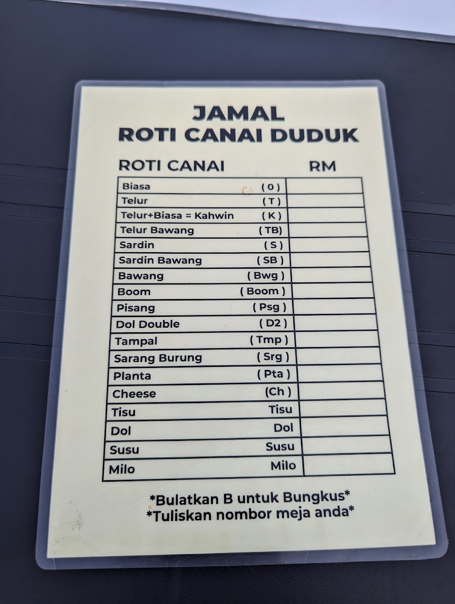 The ordering process is unique and engaging—customers jot down their choices using provided paper and pen, making the experience interactive. While the ambiance may feel a bit worn, the fast service and variety keep the place buzzing. Jamal Roti Canai Dudok stands as a must-visit for those craving authentic flavors paired with a laid-back, community-driven vibe.